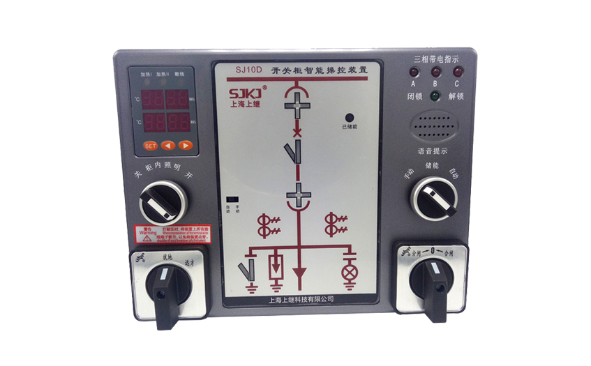 SJ10系列開關(guān)柜智能操控裝置功能強大,用于3-35kV戶內(nèi)開關(guān)柜,適用于中置柜、手車柜、固定柜、環(huán)網(wǎng)柜等多種開關(guān)柜,可取代傳統(tǒng)開關(guān)柜的一次回路模擬、帶電顯示器、自動加熱除濕控制器、斷路器分合閘按鈕等元件。具備了斷路器分合閘狀態(tài)指示、儲能指示、接地開關(guān)指示、手車位置指示、智能語言防誤提示、高壓帶電顯示、溫濕度數(shù)字顯示、柜內(nèi)照明及RS485通訊接口等多項功能。